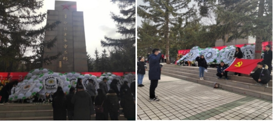 活动第三项,敬献花束,感恩英雄。在革命烈士纪念碑前,全体同志神情庄严而肃穆,列队献上白菊和黄菊,朵朵花束寄托着青年学子的哀思,表达了对先辈们的深切缅怀和无限敬仰。随后,党员们缓步绕行,瞻仰烈士纪念碑,共同缅怀英烈的革命精神和英勇事迹,重温峥嵘岁月。
